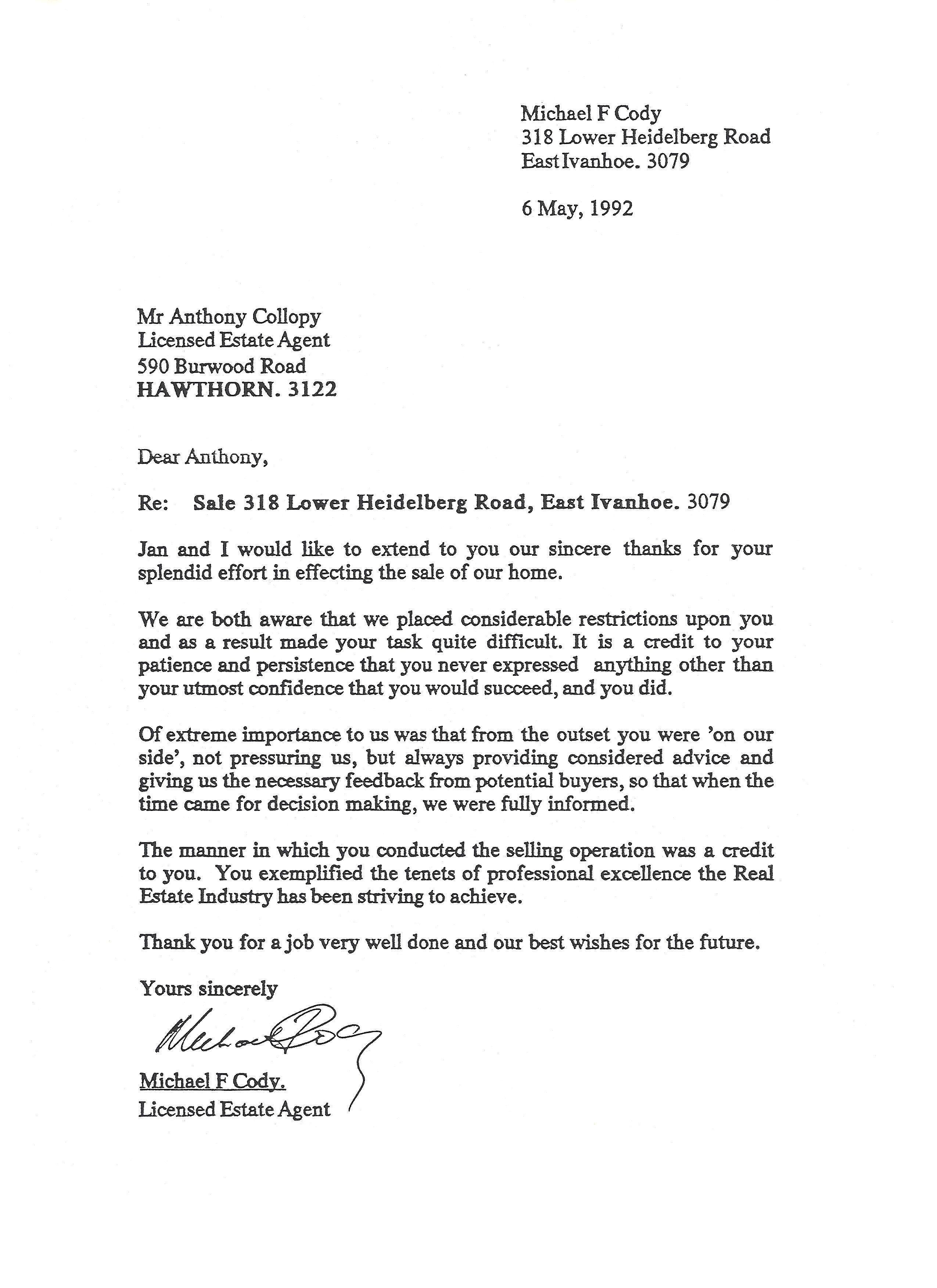 Testimonials 1992 Semi Retired Estate Agent Private Sale